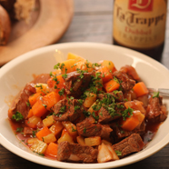 De rundvlees schouderlappen snijd u in grote stukken. Het vlees wrijft u in met zout en vers gemalen peper. De ontbijtkoek of peperkoek snijd u in blokjes. Maak de ui schoon en snijd deze in kleine stukjes. Laat de helft van de boter heet worden in een braadpan en bak het vlees rondom bruin. Haal het vlees uit de pan. Bak nu de ui samen met de provençaalse kruiden in de boter en voeg het bier toe. De gesneden koek roert u er door. Breng het geheel weer aan de kook en voeg het vlees toe. Stoof in ongeveer 45 min het vlees zachtjes gaar, op een laag pitje. Laat de rest van de boter smelten in een pan, smoor de koolraap samen met een snufje zout, peper en 3 á 4 eetlepels water. Als de koolraap kookt zet u de tempratuur laag en dekt u de pan af met een deksel. Laat de koolraap in 20 minuten garen.